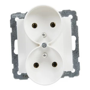 Niloe Step Gniazdo zasilające podwójne 2x2P+Z do ramek wielokrotnych, zaciski śrubowe, bez przesłony styków biały 863132