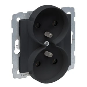 Niloe Step Gniazdo zasilające podwójne 2x2P+Z do ramek wielokrotnych, zaciski śrubowe, bez przesłony styków czarny 863532