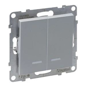 SUNO Łącznik schodowy podwójny z podświetleniem aluminium 10AX 250V zaciski automatyczne 721318