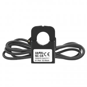 Przekładnik prądowy SC-16 jest wymagany do wykonywania pomiarów zużycia energii elektrycznej i należy go podłączyć do MEW-01. Jeden przekładnik stosujemy do pomiarów na 1 obwodzie. Do urządzenia MEW-01 można podłączyć maksymalnie 3 przekładniki.
