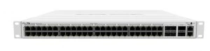 MikroTik Cloud Router Switch CRS354-48P-4S+2Q+RM to długo wyczekiwany przez fanów MikroTika switch z 48 portami Gigabit Ethernet z wyjściami PoE+ na każdym porcie. Prezentowany switch oferuje 48x gigabitowych portów RJ-45 PoE, 4x porty 10 Gb SFP+, 2x porty 40 Gb/s QSFP+, które służą do bardzo szybkich połączeń światłowodowych lub łączenia z innymi urządzeniami 40 Gb/s. Wyposażony jest także w port Fast Ethernet 10/100 Mb/s oraz w port konsolowy RJ-45.