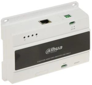 VTNS1001B2 to kontroler, dedykowany do współpracy z wideodomofonami oraz panelami w standardzie DAHUA 2-Wire (2 żyły). Został wyposażony w terminal 2-żyłowy wykorzystywany do podłączenia maksymalnie 20 monitorów i 2 paneli bramowych systemu 2-Wire. Złącze posiada możliwość przesyłu transmisji sygnału oraz zasilania. Urządzenie stanowi jako punkt centralny systemu i umożliwia rozbudowę go o funkcje IP.