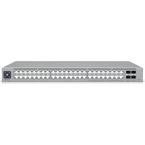 Ubiquiti USW-PRO-MAX-48 to przełącznik warstwy 3 z 48 portami, z czego 16 to porty 2.5 GbE, a 4 to porty 10G SFP+. Przełącznik ma technologię Etherlighting, która oświetla porty, aby wskazać ich lokalizację, prędkość, łącze i sieć. Przełącznik ma łącze nadrzędne 2.5 GbE i przepustowość 112 Gbps. Przełącznik jest zasilany przez PoE+ i ma opcję zasilania awaryjnego DC. Przełącznik jest zarządzany przez UniFi Network i ma dotykowy wyświetlacz LCD.