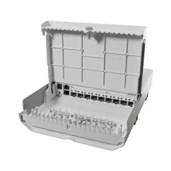 To wydajny przełącznik zewnętrzny z portami SFP, SFP+ i Gigabit Ethernet. Posiada wydajny procesor ARM v7, 256 MB pamięci RAM, 4x porty 10G SFP+ oraz zaawansowany układ przełączający firmy Marvell, który poradzi sobie nawet z największymi obciążeniami. Port Gigabit Ethernet służy nie tylko do zarządzania. Ma on bezpośrednie połączenie z układem przełącznika, dzięki czemu można korzystać z pełnej szybkości gigabitowej. Port ten obsługuje również PoE-in, więc nie trzeba polegać na gnieździe DC, aby zapewnić zasilanie w ciasnych, trudno dostępnych miejscach.
