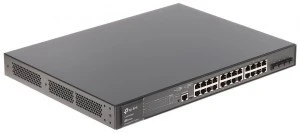 24 x RJ45 10/100/1000 Base-TX + PoE (802.3af/at), 4 x port SFP - Uplink 1000 Base-X, 1 x RJ45 - Konsola |