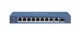 DS-3E0510P-E to wysokiej jakości niezarządzalny Switch Gigabit PoE warstwy 2, oferujące 8 portów Gigabit PoE, jeden port RJ45 10/100/1000 Mb/s i jeden port światłowodowy SFP 10/100/1000 Mb/s. Przełączniki zapewniają zaawansowaną technologię PoE i łączą inne urządzenia z wysoką wydajnością. Tymczasem wszystkie gigabitowe porty gwarantują stabilną transmisję danych.