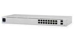 USW-16-PoE to zarządzalny przełącznik Gigabitowy w warstwie 2 z 16 portami Gigabit Ethernet, w tym 8 portami automatycznego wykrywania 802.3at PoE+ oraz 2 portami SFP, który zapewnia łącza Gigabit PoE urządzeniom RJ45 Ethernet i opcje Gigabit fiber uplink sieciom korporacyjnym. Urządzenie USW-16-POE wyposażone jest w 1,3-calowy dotykowy moduł LCM, który dostarcza informacji o statusie. Dzięki głębokości 7,9" kompaktowa, bezwentylatorowa konstrukcja może być łatwo zainstalowana w szafie typu rack SOHO.
