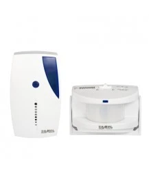 Zestaw NT-320 zawiera dzwonek (odbiornik) oraz bezprzewodowy czujnik ruchu (nadajnik). Sygnalizator służy do powiadamiania o pojawieniu się osoby w danym pomieszczeniu(np. wejściu do sklepu) lub alarmowania o pojawieniu się niepożądanych osób w miejscach chronionych. Doskonale sprawadza się w takich obiektach jak sklepy, recepcje hotelowe, magazyny, biura itp. - wszędzie tam gdzie obsługa może znajdować się w innym pomieszczeniu niż klient. Maksymalna odległość między nadajnikiem a odbiornikiem to 100m*. W chwili detekcji ruchu czujnik wysyła sygnał do odbiornika drogą radiową. Odbiornik rozpoczyna odtwarzanie wybranego dźwięku lub melodii. Czujnik ruchu posiada także drugi tryb pracy w którym sam generuje dźwięk alarmowy po wykryciu ruchu bez udziału odbiornika - pełni wtedy rolę prostego mini-alarmu.