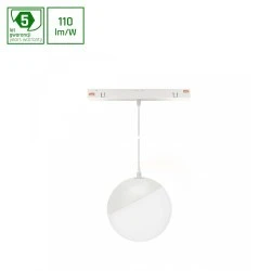 Oprawa oświetleniowa na szynoprzewód SYSTEM SHIFT - GLOBE P, o mocy 5 W, wysokiej skuteczności świetlnej 110 lm/W. Wykonana jest z komponentów o wysokiej jakości, potwierdzonej 5 letnią gwarancją. Wyróżnia się także bardzo wysokim wskaźnikiem oddawania barw RA>90. Świeci światłem o ciepłej barwie (3000K), które sprzyja relaksowaniu się i odpoczynkowi, sprawiając że oświetlane pomieszczenie jest bardziej przytulne. Przeznaczona do montażu na szynoprzewód.