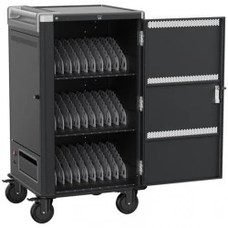 Profesjonalna, wysokiej klasy mobilna szafa do bezpiecznego przechowywania i jednoczesnego ładowania do 30 notebooków, laptopów lub tabletów. Wyposażona w system inteligentnego ładowania, system organizacji urządzeń oraz ich okablowania, z ochroną przed przeciążeniem i zwarciem. Gotowa to wdrożenia i natychmiastowej pracy w instytucjach edukacyjnych czy środowiskach korporacyjnych.