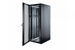 Szafa stojąca RACK 19 42U 600x600mm drzwi szklane czarna NEKU FLR + wyposażenie