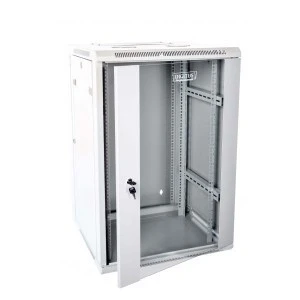 Szafa sieciowa wisząca 19 18U rack 600x600, drzwi szyba, szary, niedzielona, niezłożona, 60kg DN-WU19 18U/600