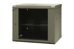 Konstrukcja szafy wykonana z blachy stalowej, przeznaczona do samodzielnego montażu – sprzedawana w pudełkach w postaci nieskręconej. Szafy przeznaczone są do stosowania wewnątrz pomieszczeń. W podłodze i w dachu szaf znajdują się podłużne miejsca do wybicia, umożliwiające wprowadzenie przewodów. Obudowa posiada dwa otwory wyprowadzające do kabli (370x60mm 1xczęść górna, 1xczęść dolna). Drzwi przednie z wklejoną szybą i zamkiem 1-punktowym, zamontowane na zawiasach umożliwiających otwieranie drzwi o 180 stopni. Zdejmowane osłony boczne z zamkiem. Dwie płaszczyzny 19” pionowych profili montażowych, mocowane na poziomych trawersach z rastrem, co 15mm, minimalna odległość od drzwi przednich 60mm. W dachu szafy otwory przystosowane do montażu 2 modułów wentylacyjnych (2 wentylatorów). Linka o długości 300mm do uziemienia. Półka stała 250mm oraz 15 śrub montażowych w standardowym wyposażeniu.