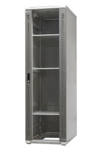 Rama zawiera trzy otwory wprowadzające do kabli (300x40mm). 4 nóżki poziomujące. Drzwi przednie z wklejoną szybą hartowaną i zamkiem 1-punktowym wyposażonym w dźwignię obrotową zamontowane na zawiasach umożliwiających otwarcie drzwi o 180 stopni. Drzwi tylne oraz dwie ściany boczne z blachy stalowej, zdejmowane, mocowane przy pomocy zamków jednopunktowych. Zaawansowany model szaf teleinformatycznych rack stojących z bogatym wyposażeniem. Możliwość łączenia szaf w rzędy (z wykorzystaniem łącznika do szaf z serii EmiterNet). Możliwość zastosowania kół jezdnych (przy zastosowaniu kółek jezdnych maksymalna nośność statyczna nie może przekraczać 150 kg). Możliwość ustawienia na cokołach. Szafy stojące dostarczane są kompletnie zmontowane na palecie drewnianej, zapakowane w karton (czapy kartonowe na dachu, narożniki kartonowe i osłony boczne z kartonu), owinięte folią stretch. Konstrukcja szafy wykonana z blachy stalowej. Rama skręcana z profili stalowych, przystosowana do ustawienia na nóżkach poziomych lub montowana na cokole. W dachu panel wentylacyjny, 2 lub 4 wentylatory. 3 poziome trawersy służące do mocowania pionowych profili. 4 pionowe profile montażowe, minimalna odległość od drzwi przednich 35mm (standardowo 95mm). Możliwość regulacji położenia co 20 mm. Linka uziemiająca na wyposażeniu. Półki stałe mocowane w 4 punktach, 20 śrub montażowych oraz komplet 2 wentylatorów (szafy 24U, 32U i 42U 600x600) lub 4 wentylatorów (pozostałe rozmiary szaf) i termostat w standardowym wyposażeniu. Szafy rackowe przeznaczone są do stosowania wewnątrz pomieszczeń.
