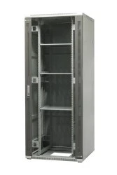 Szafy stojące dostarczane są kompletnie zmontowane na palecie drewnianej, zapakowane w karton (czapy kartonowe na dachu, narożniki kartonowe i osłony boczne z kartonu), owinięte folią stretch. Zaawansowany model szaf teleinformatycznych rack stojących z bogatym wyposażeniem. Konstrukcja szafy wykonana z blachy stalowej. Rama skręcana z profili stalowych, przystosowana do ustawienia na nóżkach poziomych lub montowana na cokole. W dachu panel wentylacyjny, 2 lub 4 wentylatory. Drzwi tylne oraz dwie ściany boczne z blachy stalowej, zdejmowane, mocowane przy pomocy zamków jednopunktowych. 3 poziome trawersy służące do mocowania pionowych profili. 4 pionowe profile montażowe, minimalna odległość od drzwi przednich 35mm (standardowo 95mm). Możliwość regulacji położenia co 20 mm. Rama zawiera trzy otwory wprowadzające do kabli (300x40mm). 4 nóżki poziomujące. Drzwi przednie z wklejoną szybą hartowaną i zamkiem 1-punktowym wyposażonym w dźwignię obrotową zamontowane na zawiasach umożliwiających otwarcie drzwi o 180 stopni. Linka uziemiająca na wyposażeniu. Półki stałe mocowane w 4 punktach, 20 śrub montażowych oraz komplet 2 wentylatorów (szafy 24U, 32U i 42U 600x600) lub 4 wentylatorów (pozostałe rozmiary szaf) i termostat w standardowym wyposażeniu. Szafy rackowe przeznaczone są do stosowania wewnątrz pomieszczeń. Możliwość łączenia szaf w rzędy (z wykorzystaniem łącznika do szaf z serii EmiterNet). Możliwość zastosowania kół jezdnych (przy zastosowaniu kółek jezdnych maksymalna nośność statyczna nie może przekraczać 150 kg). Możliwość ustawienia na cokołach.