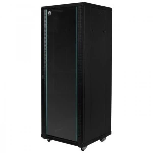Szafa stojąca RACK 19 18U 600x800mm drzwi szklane czarna (złożona) NEKU FLR GREEN + wyposażenie