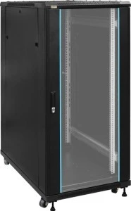 Nazwa: Szafa RACK 27U stojąca do złożenia 600x1000 Przeznaczenie Szafa RACK 19" umożliwia integrację systemów CCTV, KD, SSWiN, RTV, LAN itp. w średnich i duzych firmach. Przeznaczona jest do montażu urządzeń produkowanych w obudowach w standardzie 19". Szafy RACK zapewniają estetyczny montaż urządzeń oraz zabezpieczają je przed mechanicznymi uszkodzeniami. Wymiary montażowe 19" x 27U x 760mm Wymiary 600 x 1388 x 1000 [+/-2 mm] dystans od podłoża: 72 mm Typ Szafy stojąca do złożenia Obciążenie statyczne 1000kg - z nogami poziomującymi Zamykanie drzwi frontowe – zamek (RAZ-S, ten sam kod) drzwi tylne – zamek (RAZ25, ten sam kod) drzwi boczne – Click (możliwość montażu zamka – RAZB16) Wykonanie stal walcowana na zimno SPCC, 1.2mm, 1.5mm, 2mm, RAL9004 (czarny), metalowa Stopień ochrony EN60529 IP 20 Gwarancja 1 rok Uwagi - w komplecie 4 kółka bez blokady, 4 nogi poziomujące - możliwość przełożenia drzwiczek lewa prawa