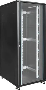Nazwa: Szafa serwerowa RACK 42U stojąca do złożenia 800x1000 Przeznaczenie Szafa RACK 19" umożliwia integrację systemów CCTV, KD, SSWiN, RTV, LAN itp. w średnich i dużych firmach. Przeznaczona jest do montażu urządzeń produkowanych w obudowach w standardzie 19". Szafy RACK zapewniają estetyczny montaż urządzeń oraz zabezpieczają je przed mechanicznymi uszkodzeniami. Wymiary montażowe 19" x 42U x 782mm Wymiary 800 x 2055 x 1000 [+/-2 mm] dystans od podłoża: 72 mm Typ Szafy stojąca do złożenia – serwerowa Obciążenie statyczne 1000kg - z nogami poziomującymi Zamykanie drzwi frontowe – zamek (RAZ-S, ten sam kod) drzwi tylne – zamek (RAZ25, ten sam kod) drzwi boczne – Click (możliwość montażu zamka – RAZB16) Wykonanie stal walcowana na zimno SPCC, 1.2mm, 1.5mm, 2mm, RAL9004 (czarny), metalowa Stopień ochrony EN60529 IP 20 Gwarancja 1 rok Uwagi - w komplecie 4 kółka bez blokady, 4 nogi poziomujące - możliwość przełożenia drzwiczek lewa prawa - w komplecie 2 organizery kabli pionowe