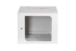 Szafa wisząca 19 cali 12U 600x600mm IP54 ściany boczne pełne drzwi z szybą, wewnetrzna RAL 7035 SWK19‑12U‑60‑DS‑W 19‑6006SWK19‑