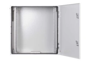 Szafa wisząca 19 cali 15U 600x400mm IP54 ściany boczne pełne, drzwi pełne, zewnętrzna RAL 7035 SWK19‑15U‑40‑DP‑Z 19‑6009SWK19‑1