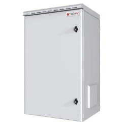 - Wyposażona w system pasywnej wentylacji - nawiew powietrza umieszczony w metalowych obudowach na obydwu bokach szafy, odprowadzenie powietrza z wnętrza szafy perforowanymi listwami w dachu szafy