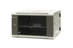 Linka o długości 300mm do uziemienia. Półka stała 280mm oraz 15 śrub montażowych w standardowym wyposażeniu. Szafa teleinformatyczna wykonana z blachy stalowej, konstrukcja spawana, o dużej sztywności (większej niż w przypadku modeli szaf skręcanych). Zdejmowane osłony boczne z zamkiem. Dwie płaszczyzny 19” pionowych profili montażowych (rack) , mocowane na poziomych trawersach z rastrem, co 20 mm, minimalna odległość od drzwi przednich 35 mm (standardowo 65mm). W dachu szafy otwory przystosowane do montażu modułów wentylacyjnych 1-wentylatorowych. Szafy przeznaczone są do stosowania wewnątrz pomieszczeń. Obudowa posiada cztery otwory wyprowadzające do kabli (340x60mm 2xczęść górna, 2xczęść dolna). Drzwi przednie z wklejoną szybą hartowaną i zamkiem 1-punktowym, zamontowane na zawiasach umożliwiających otwieranie drzwi o 180 stopni. Ściana tylna z blachy stalowej z zamkiem 1-punktowym, mocowana przy pomocy zawiasów umożliwiających otwieranie szafy o 180 stopni.