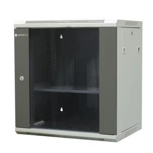 Szafa teleinformatyczna wykonana z blachy stalowej, konstrukcja spawana, o dużej sztywności (większej niż w przypadku modeli szaf skręcanych). Dwie płaszczyzny 19” pionowych profili montażowych (rack), mocowane na poziomych trawersach z rastrem, co 20 mm, minimalna odległość od drzwi przednich 35 mm (standardowo 65mm). Drzwi przednie z wklejoną szybą hartowaną i zamkiem 1-punktowym, zamontowane na zawiasach umożliwiających otwieranie drzwi o 180 stopni. Obudowa posiada dwa otwory wyprowadzające do kabli (340x60mm 1xczęść górna, 1xczęść dolna). W dachu szafy otwory przystosowane do montażu modułów wentylacyjnych 1-wentylatorowych. Zdejmowane osłony boczne z zamkiem. Linka o długości 300mm do uziemienia. Półka stała 280mm oraz 15 śrub montażowych w standardowym wyposażeniu. Szafy przeznaczone sa do stosowania wewnątrz pomieszczeń.