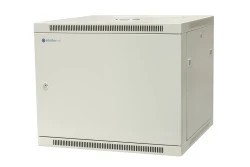 Drzwi przednie z drzwiami metalowymi z zamkiem 1-punktowym, zamontowane na zawiasach. W dachu szafy otwory przystosowane do montażu modułów wentylacyjnych 1-wentylatorowych. Linka o długości 300mm do uziemienia. Półka stała 410mm oraz 15 śrub montażowych w standardowym wyposażeniu. Szafy przeznaczone są do stosowania wewnątrz pomieszczeń. Szafa wykonana z blachy stalowej, konstrukcja spawana, o dużej sztywności (większej niż w przypadku modeli szaf skręcanych). Obudowa posiada dwa otwory wyprowadzające do kabli (340x60mm 1xczęść górna, 1xczęść dolna). umożliwiających otwieranie drzwi o 180 stopni. Zdejmowane osłony boczne z zamkiem. Dwie płaszczyzny 19” pionowych profili montażowych, mocowane na poziomych trawersach z rastrem, co 20 mm, minimalna odległość od drzwi przednich 35mm (standardowo 65 mm).