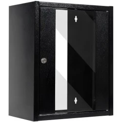 Szafa rack wisząca 10 9U 310x300 IP30 RAL9005 czarna (drzwi przeszklone) SZW-10-9U-30-DS-C