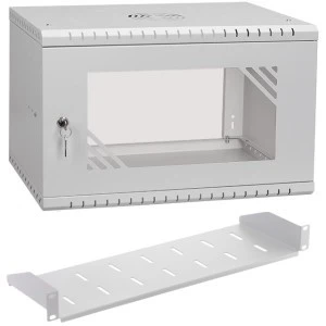 Wisząca szafa serwerowa umożliwia instalację urządzeń w miejscach z ograniczoną przestrzenią. Produkt pozwala na montaż kilkunastu urządzeń. Otwarty tył oraz wyłamywane przepusty kablowe pomagają w swobodnym wyprowadzeniu okablowania na zewnątrz. Szafa służy do instalacji, organizacji i składowania urządzeń zgodnych ze standardem 19":
