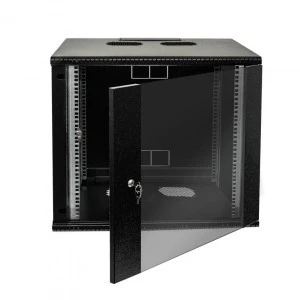 Szafa wisząca RACK 19 cali 9U/600mm drzwi przeszklone otwierane boki RAL 9005 BOCK-019-090-600-C