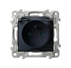 VENA Gniazdo bryzgoszczelne IP44 pojedyncze z uziemieniem z przesłonątorów prądowych bez ramki 2P+Z 16A 250V czarny mat 510939