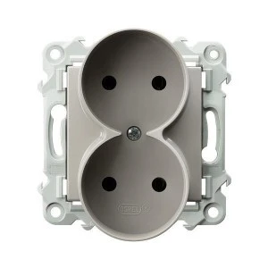 LOGI Gniazdo podwójne 2x2P kompletne śrubowe 16A 250V Srebrny 25214