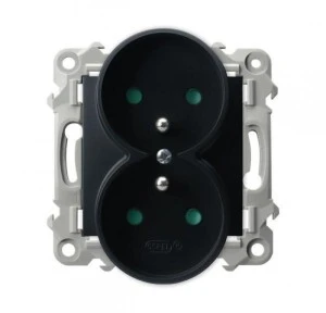 SZAFIR Gniazdo podwójne z uziemieniem z przesłonami torów prądowych, moduł bez ramki czarny metalik GP‑2ZRZP/m/33
