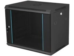 Szafa teletechniczna RACK, wisząca, 19", do zastosowań wewnątrzbudynkowych. Dostępna w 6 wysokościach użytkowych (4, 6, 9, 12, 15 i 18U), przeznaczona do montażu elementów pasywnych i aktywnych systemów okablowania strukturalnego oraz CCTV. Do ściany montuje się ją przy pomocy czterech specjalnych kotew znajdujących się w zestawie. Szafa posiada dwa wyłamywane przepusty kablowe - po jednym w górnej i dolnej pokrywie, zapakowana w karton z kablami uziemiającymi oraz osprzętem montażowym.