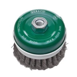 Szczotka czołowa STALCO to element potrzebny przy rozmaitych pracach szlifierskich. Wykonana jest z drutu stalowego spalanego, którego ostre krawędzie tworzą powierzchnię szlifująca. Dzięki nim można zbierać zabrudzenia, matowić podłoża, a także usuwać stare powłoki lakiernicze. Sprawdza się przy powierzchniach płaskich, a także elementach o nieregularnych kształtach. Szczotka czołowa jest produktem przydatnym w warsztatach rzemieślniczych, a także w rękach majsterkowiczów. Można zamontować ją bezpośrednio do gniazda szlifierki kątowej, na co pozwala gwint M14. W ofercie STALCO znajdują się trzy warianty, które różnią się średnicą zewnętrzną elementu.