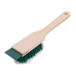 Funkcjonalna szczotka do kosiarki to narzędzie przydatne w czasie prac pielęgnacyjnych w ogrodzie. Jej konstrukcja została zaprojektowana z myślą o czyszczeniu maszyn koszących. Można nią wydostać resztki roślin i ziemi z mechanizmu kosiarki. Sprawdzi się przy czyszczeniu tarczy tnących, pojemnika na trawę, kółek i innych elementów. Szczotka do kosiarki ma oprawę z drewna bukowego o ergonomicznym kształcie uchwytu. Zamocowano do niej włosie z tworzywa sztucznego PET o długości 30 milimetrów. Dodatkowo w górnej części znajduje się skrobak z tworzywa sztucznego do usuwania najbardziej uciążliwych zabrudzeń. Otwór do zawieszania w tylnej części uchwytu ułatwi przechowywanie szczotki i utrzymanie porządku w altanie narzędziowej.