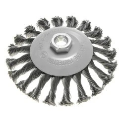 Szczotka druciana tarczowa odgięta 100 mm, drut skręcony, INOX, M14