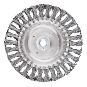 Szczotka druciana tarczowa odgięta 100 mm, drut skręcony, INOX, M14