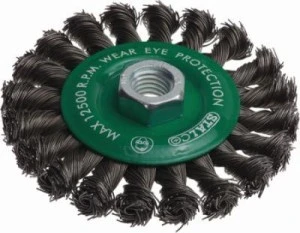 Szczotka tarczowa jest dodatkiem do elektronarzędzi przeznaczonym do prac szlifierskich. Wyposażona w gniazdo wewnętrzne M14, może być montowana do gwintów w szlifierkach kątowych. Narzędzie umożliwia zbieranie starych powłok lakierniczych, matowienie powierzchni czy usuwanie zabrudzeń. Szczotka tarczowa jest wykonywana z drutu stalowego splątanego. Stosunkowo miękka powierzchnia narzędzia umożliwia prace na elementach gładkich i o nieregularnych kształtach. Narzędzie sprawdzi się zarówno w warsztacie majsterkowicza, jak i w pracach w przemyśle.