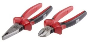 Zestaw RS 2-elementowych szczypiec. Zestaw RS dostawcy wyrobów profesjonalnej jakości jest wykonany ze stali. Zestaw składa się z pary szczypiec kombinerek i dwóch nożyków diagonalnych, dzięki którym można używać narzędzi ręcznych do skręcania, gięcia lub przecinania różnego typu drutów.