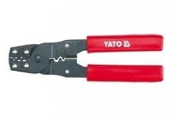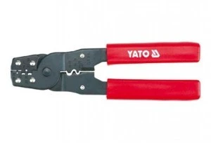 Zaciskacz do końcówek konektorowych, to bardzo precyzyjne urządzenie wykorzystywane w specjalistycznych serwisach elektronicznych i telekomunikacyjnych. Jego konstrukcja pozwala na wykonywanie wielu skomplikowanych procesów, wymagających dokładności i precyzji wykonania, ze względu na jakość działania urządzeń wykorzystujących elektryczne złącza konektorowe. Zaciskacz pozwala na cięcie przewodów, ściąganie izolacji oraz precyzyjne połączenie przewodów ze specjalnymi końcówkami złączy konektorowych. Zaciskacz posiada ostrza tnące o twardości 42-48 HRC. Obsługuje 5 rodzaje końcówek.