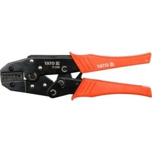 Profesjonalne szczypce z mechanizmem zapadkowym przeznaczone do zaciskania końcówek konektorowych izolowanych i nieizolowanych na przewodach. Wykonane z blachy stalowej, utwardzanej do ok 44-47HRC. Obsługują konektory w zakresie od 0,5 do 4,0mm2