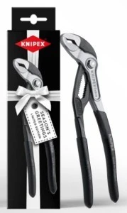 Te wysokiej jakości szczypce nastawne do rur są czymś wyjątkowym już na pierwszy rzut oka, ponieważ limitowana dwukolorowa wersja jest częściowo chromowana, a częściowo fosforanowana, z eleganckimi, smukłymi rękojeściami z czarnego tworzywa sztucznego! Przy drugim spojrzeniu widoczne są również przemyślane, zaawansowane technologicznie cechy: precyzyjna regulacja, która jest równie dokładna, co solidna, niezwykle duża szerokość chwytu dla przedmiotów o średnicy do 42 mm przy długości narzędzia 180 mm, a także legendarny już mechanizm samozaciskowy wszystkich szczypiec KNIPEX Cobra®. W świątecznym opakowaniu idealnie pasującym na tę okazję.