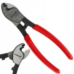 Szczypce do cięcia przewodów 200 mm marki Schmith to solidne narzędzie przeznaczone do precyzyjnego cięcia kabli i przewodów. Wykonane z wysokiej jakości stali chromowo-wanadowej (CrV), zapewniają trwałość i odporność na zużycie. Profilowane wycięcia w szczękach umożliwiają stabilne przytrzymanie przewodu, minimalizując ryzyko jego wysunięcia podczas cięcia. Ergonomiczne rękojeści gwarantują komfort pracy nawet przy dłuższym użytkowaniu.