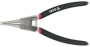 Szczypce segera służą do montażu i demontażu pierścieni zabezpieczających segera. Są 2 typy tych zabezpieczeń: wewnętrzne (rozprężne w środku tulei) i zewnętrzne (zaciskowe, na zewnątrz wałka). Produkt Yato jest dostosowany do pracy z pierścieniami zewnętrznymi. Posiada proste końcówki. Szczypce są wykonane z trwałej i wytrzymalej stali chromowo wanadowej, posiadaja rączki z dwu kolorowej gumy.