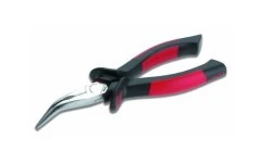 Szczypce telefoniczne z zakrzywionymi szczękami DIN ISO 5745, przegub wsuwany, szczęki zagięte pod kątem 45 stopni, z indukcyjnie hartowaną precyzyjną krawędzią tnącą (ok. 60 HRC), długie, płaskie, okrągłe szczęki (szczypce igłowe), ząbkowane powierzchnie chwytne i ząbkowane wgłębienie (palnik otwór), z krawędziami tnącymi do twardego i miękkiego drutu 160 mm