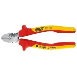 Szczypce STS 160 Szczypce do cięcia drutu miękkiego i twardego: - średnica drutu miękkiego - 4 mm - średnica drutu o średniej twardości - 2,8 mm - średnica drutu twardego - 2 mm Cechy szczególne: - twardość ostrzy ok. 60 HRC - materiał: stal chromowo-wanadowa - długotrwałe użytkowanie, nawet przy intensywnej eksploatacji - dwukomponentowa izolowana rękojeść z wkładkami z elastomeru zapobiegająca ześlizgnięciu się dłoni oraz przeskokowi iskry z narzędzia na rękę Długość: 160 mm; Masa: 200 g