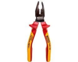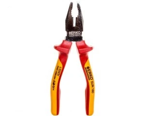 Szczypce uniwersalne SUN 160 Szczypce do prac monterskich oraz cięcia drutu twardego i bardzo twardego: - średnica drutu o średniej twardości - 2,5 mm - średnica drutu twardego - 1,8 mm - średnica kabla Al i Cu - 10,0 mm - przekrój kabla Al i Cu - 16,0 mm2 Cechy szczególne: - twardość ostrzy ok. 60 HRC - długotrwałe użytkowanie, nawet przy intensywnej eksploatacji - materiał: stal chromowo - wanadowa - dwukomponentowa izolowana rękojeść z wkładkami z elastomeru, zapobiegająca ześlizgnięciu się dłoni oraz przeskokowi iskry z narzędzia na rękę Długość: 160 mm; Masa: 210 g
