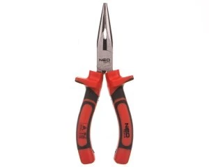 Szczypce wydłużone proste 160 mm VDE, polerowane, rękojeść dwukomponentowa, stal CrV, certyfikat TUV